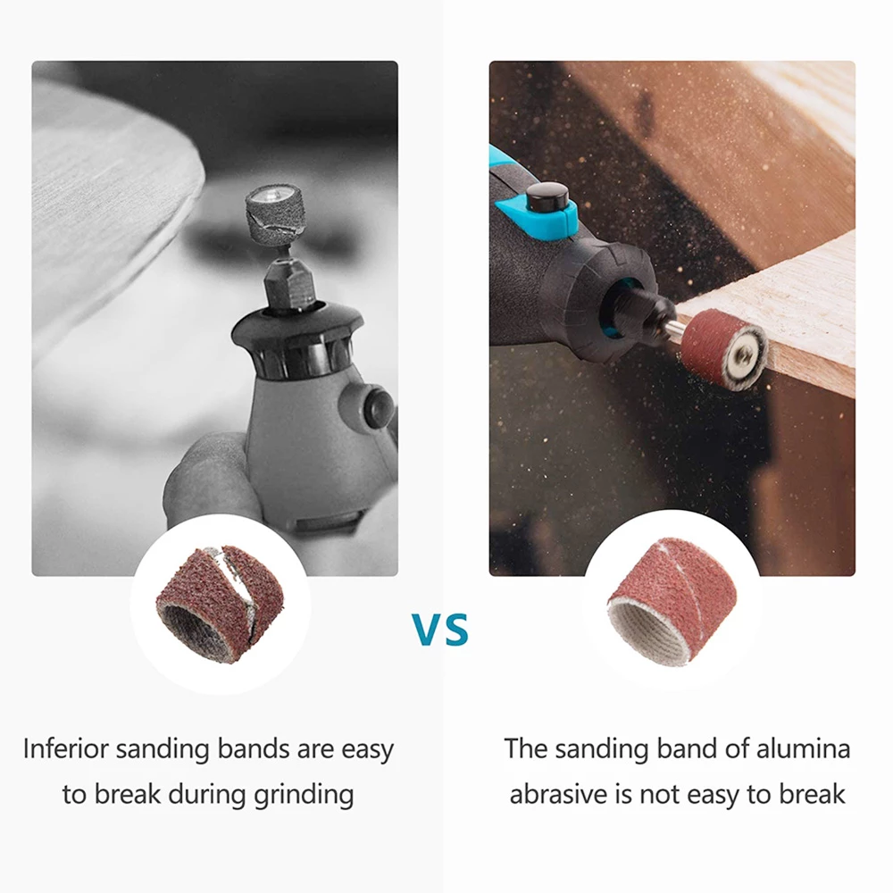 instead of ordinary sand ring, our sand ring of alumina abrasive is bonded with a dense emery cloth to solve the problem of cracking in use. 3-jaw sandwich core made of tin bronze chuck is more flexible than conventional aluminum, which fits tightly to the handle of the accessory and improves the concentricity, ensuring that there is no shaking during use.