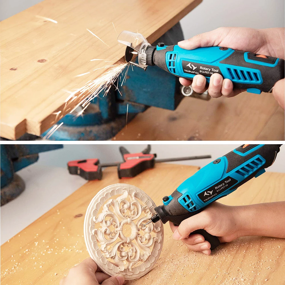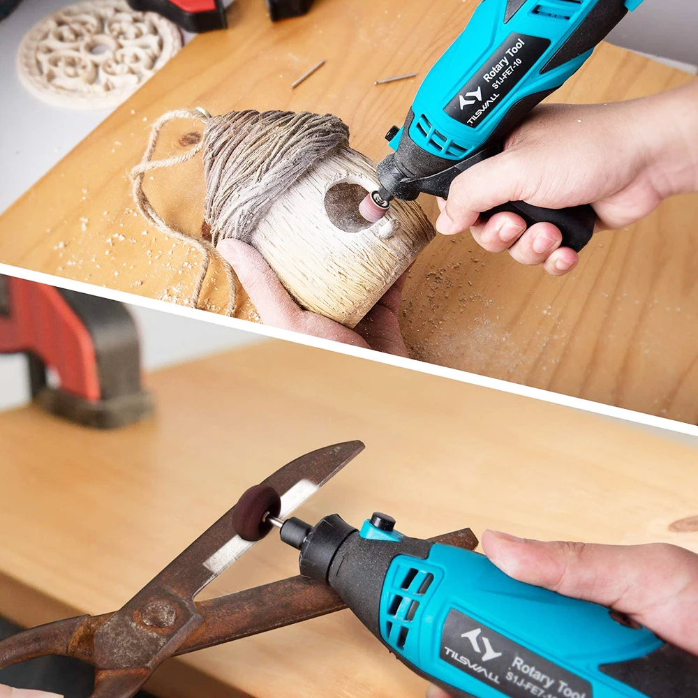 | Package Contents | 1 × Tislwall Rotary Tool 1 × Storage Box 1 × Cover Shield 1 × Vice handle&nut 1 × Flexible Shaft 1 × Spanner 1 × Lead angle 8 × sand circle P80 50 × Sandpaper sheet P180 coarse sand 30 × Thickened resin cutting disc 1 × Double net cutting disc 1 × φ22mm diamond cutting disc 1 × φ22mm stainless steel toothed saw blade 1 ×Cutting milling cutter (Langya rod) 1 ×Hsteel engraving head (ball-end milling cutter) 6 × Diamond grinding head 2 × white drill bit 4 × Silicon carbide grinding head 2 × Alumina grinding head 2 × Whetstone 2 × Wool cone 2 × wool felt 1 × Nylon brush 1 × Wire brush 1 × Wire drawing wheel (with handle) 2 × sand drum 1 × Threaded post 2 × Sand Disc Extension 1 × Nine-hole extension rod (metal gasket) 1 × Soft shaft square nut 1 × Small wrench 2 × Tin bronze sandwich φ2.3mm, φ3.2mm |