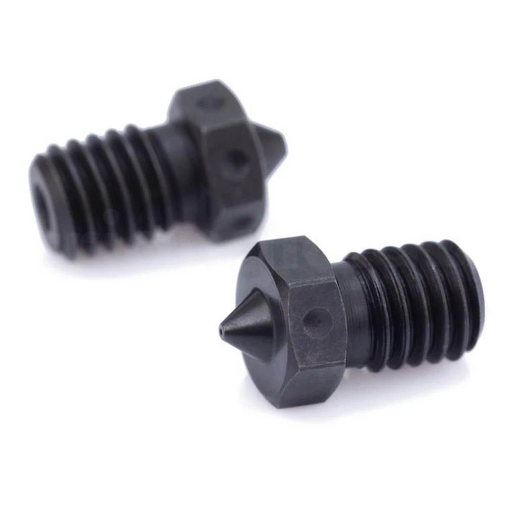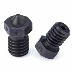 Trianglelab hardened steel V6 nozzles are suitable for V6, Lite6, and Titan Aero hotends, can print PEEK and carbon fiber filament, and are compatible with Prusa 3D printers.