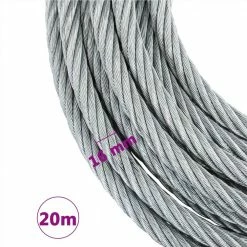 Our wire rope is suitable for a wide variety of applications. It is great for hoisting, lifting, binding, chain, grinder, clothesline, DIY railing, etc. All steel cables are galvanised. The end of the cables is fused and tapered. Delivery includes a safety sling hook.