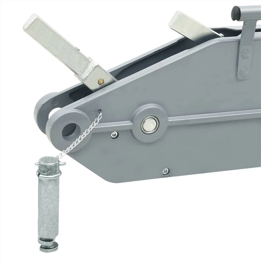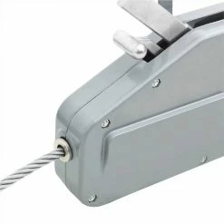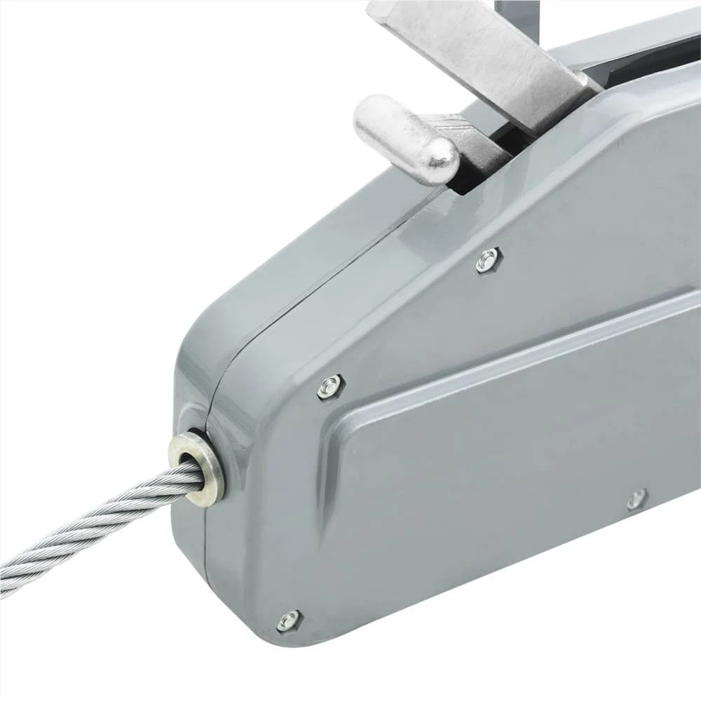 Wire rope pulling hoist, also known as wire rope traction machine, is a safe and efficient tool for lifting products. It has three functions of lifting, traction and tension. It is used to manually move trees, stumps, vehicles or other loads, etc. It is made of an aluminium housing with a steel mechanism inside. The wire rope comes fitted with a hook and safety catch, and the hoist has overload protection to ensure high personal safety during operation. This winch hoist includes 20 m long steel rope with high breaking force and is wear resistance. It is equipped with a safety hook, preventing wire rope from coming off in operation. One-man operated, using a telescopic operating handle, it works in any position and over any height of lift. Compact and lightweight design makes this product suitable for confined or limited space.