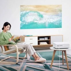 The projector has a 1.2:1 projection ratio to create a 150-inch large screen, you can enjoy a large screen viewing experience even in bedroom.