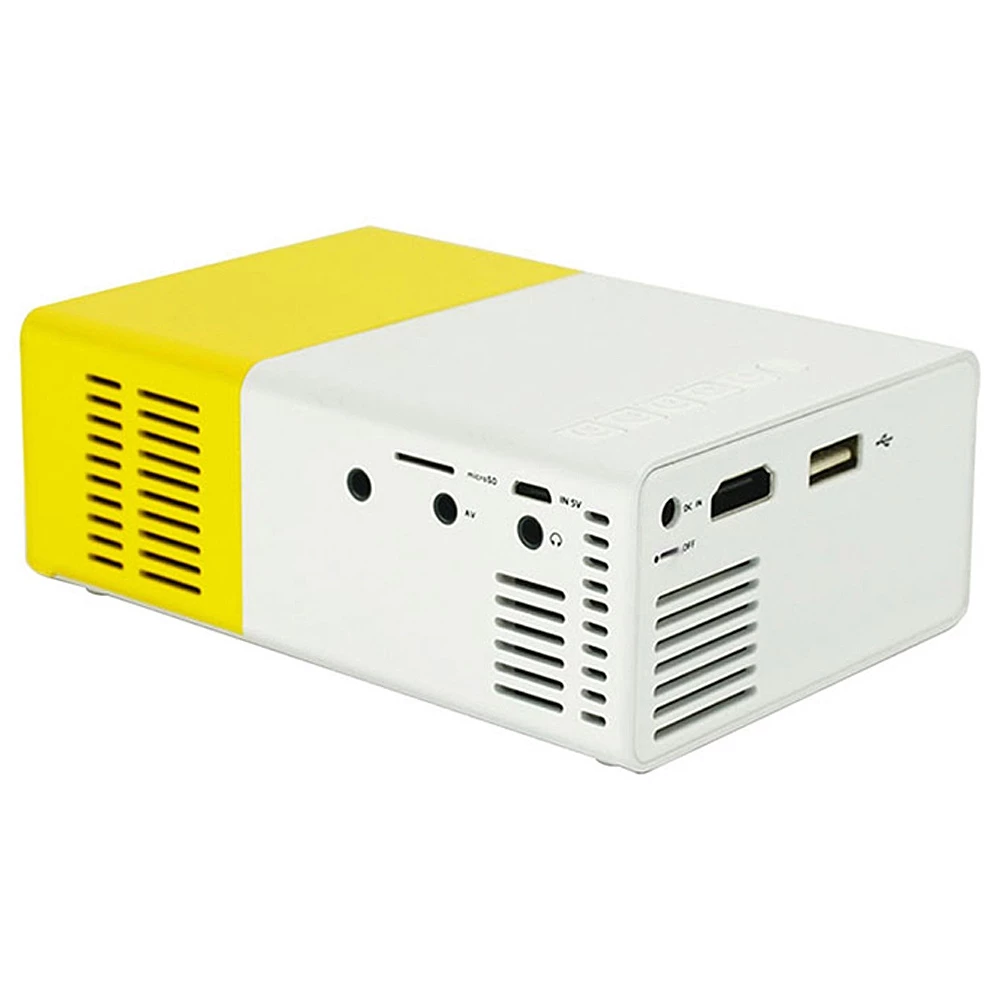 YG300 mini portable projector is a multimedia projector with a high-performance player and high-quality picture native resolution of 320×240 pixels. YG300 mini portable projector. The supported resolution can reach up to 1920×1080. It provides the contrast ratio 300:1 and outputs brightness from 400 to 600 lumens. The projector sources from an LED lamp, which lasts about 30000 hours’ lifetime so that you needn’t replace it.