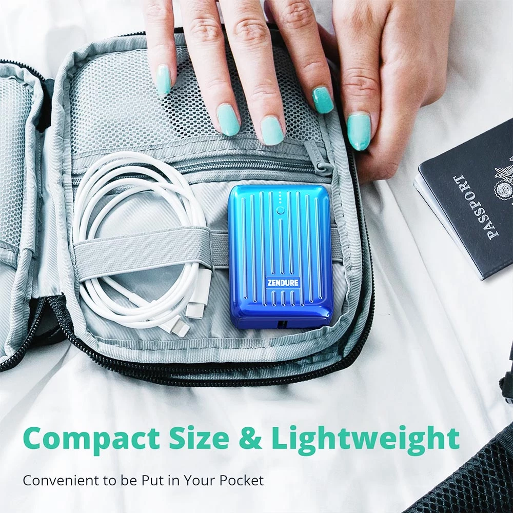 Superior Portability & Compact: Zendure Supermini portable power bank with the 21700 premium internal battery cells, ultra-slim suitcase design with metallic texture. 180g, smaller than a credit card, ONE of the smallest 10,000mAh external batteries on Amazon, worry-free to slip in your bag or pocket for daily use.