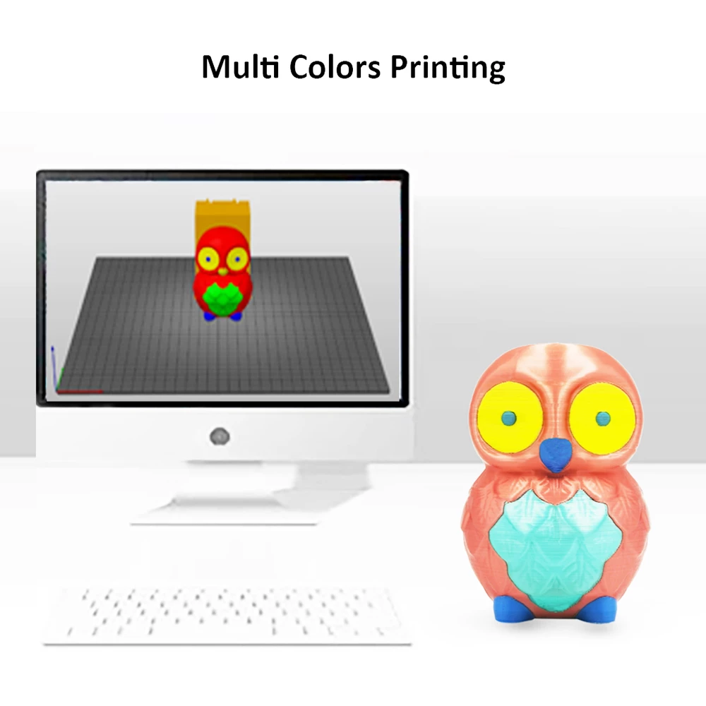 The printer’s 4 extruder modules and 4-in-1-out non-mix color hot end can make multi color printing, which will greatly enrich your 3D printing experience. One-button switching mode makes monochrome conversion into multi-color easier.